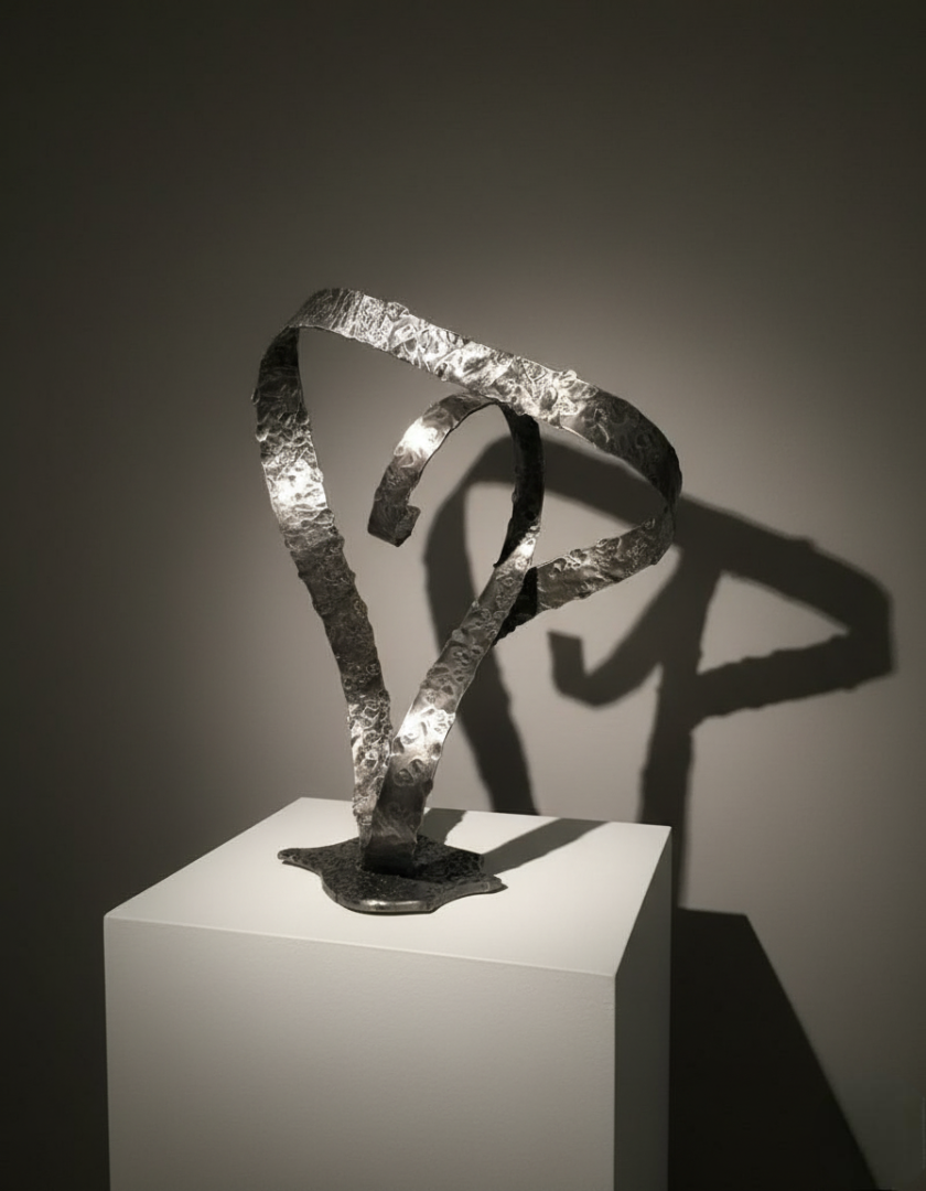 Mis esculturas abstractas exploran la interacción de formas y espacios, donde la materia se convierte en un lenguaje visual que invita a la reflexión. Cada pieza es un juego entre la simplicidad y la complejidad, buscando evocar emociones, pensamientos y sensaciones a través de líneas, volúmenes y texturas. La abstracción aquí no imita la realidad, sino que invita al espectador a una experiencia única y subjetiva, donde lo tangible y lo intangible se entrelazan.